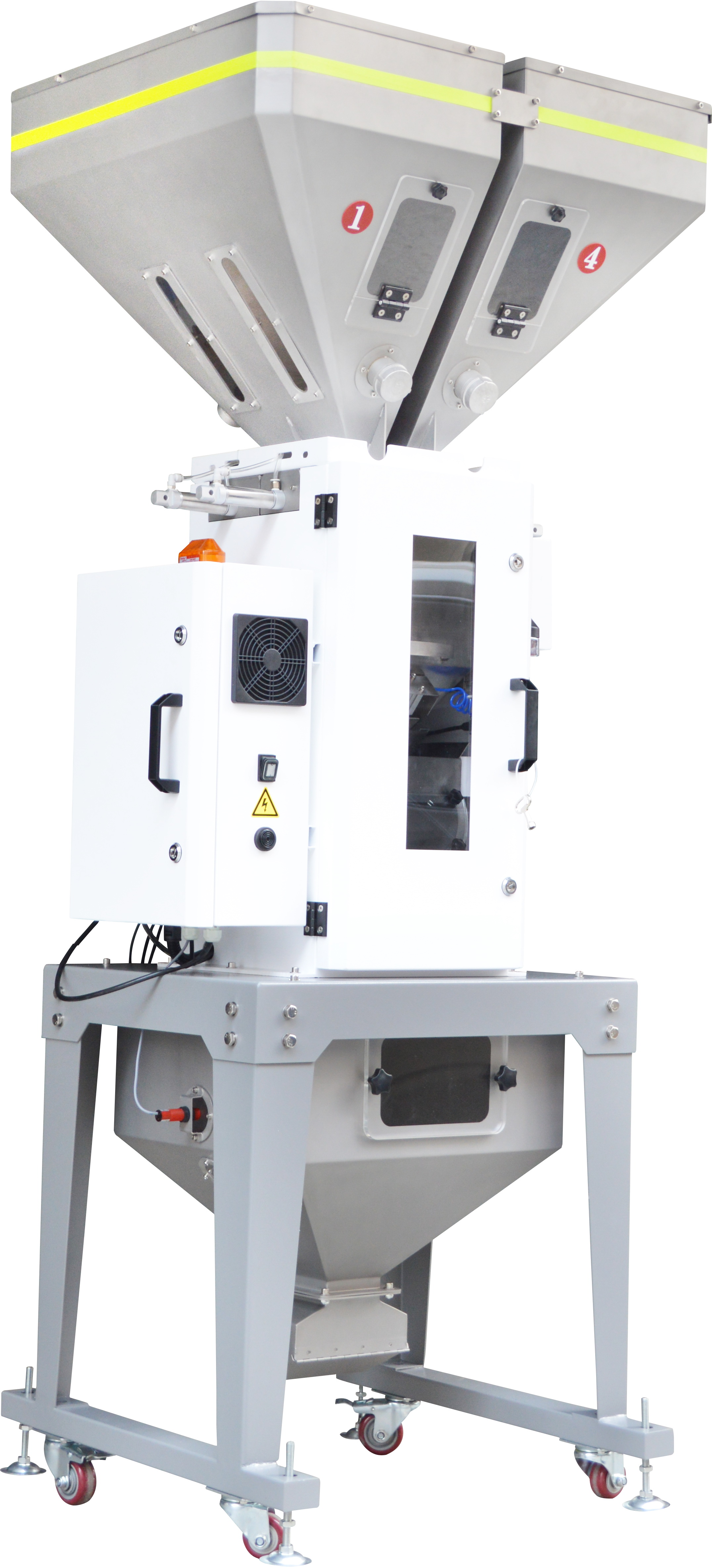 The gravimetric blender can be directly mounted on the injection machine or optional stand frame near the injection machine.